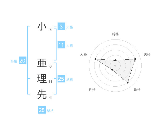 本サイトの鑑定結果の正当性は保証しません。鑑定結果は参考程度にお読みください。実際の名づけにご利用される場合は、姓名判断についてご自身でよくお調べください。