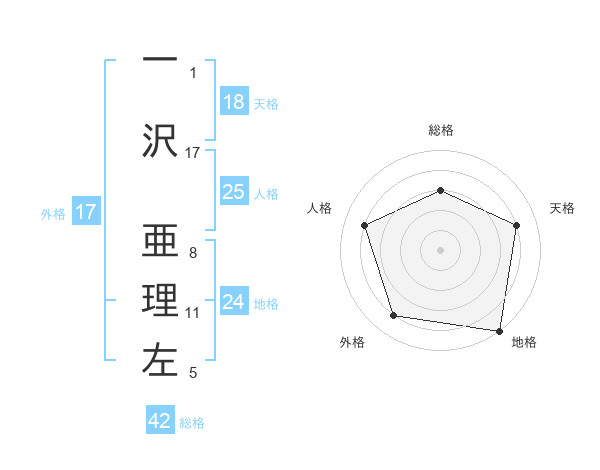 一沢 亜理左さんを姓名の画数から五運を鑑定