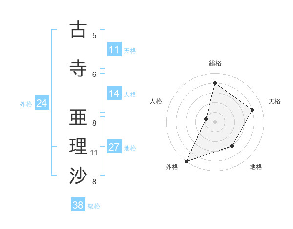 古寺 亜理沙さんを姓名の画数から五運を鑑定