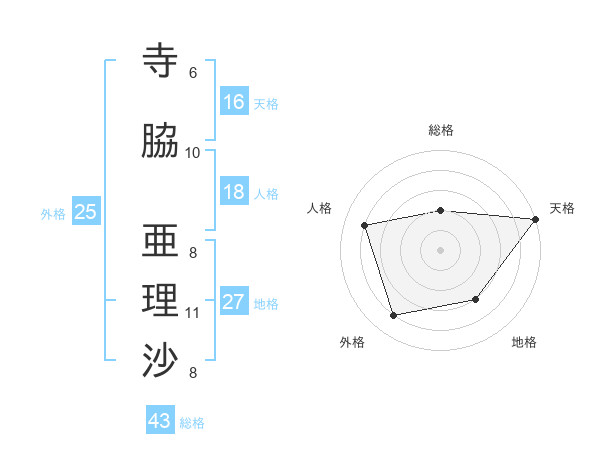 寺脇 亜理沙さんを姓名の画数から五運を鑑定