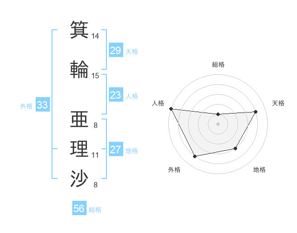 箕輪 亜理沙さんを姓名の画数から五運を鑑定