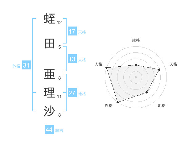 蛭田 亜理沙さんの天格は17画の4点!