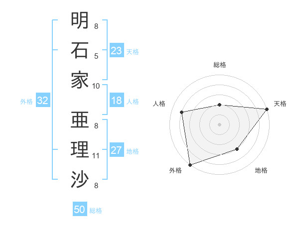 明石家 亜理沙さんを姓名の画数から五運を鑑定