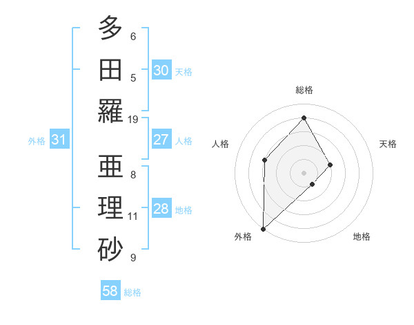 多田羅 亜理砂さんを姓名の画数から五運を鑑定