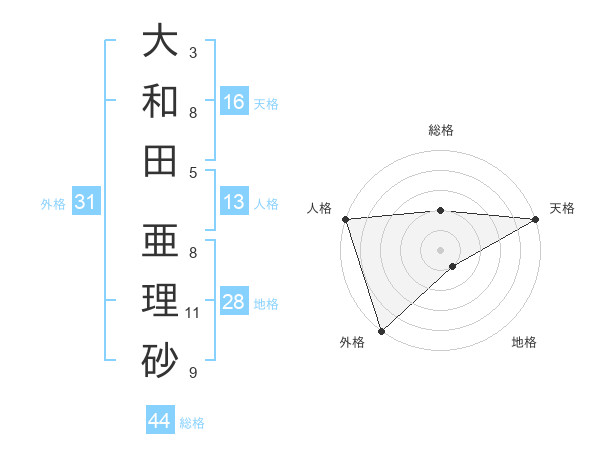 大和田 亜理砂さんの外格は31画の5点!