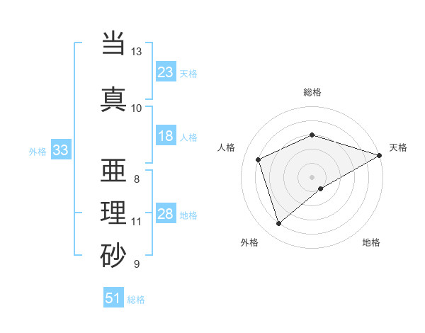 当真 亜理砂さんを姓名の画数から五運を鑑定