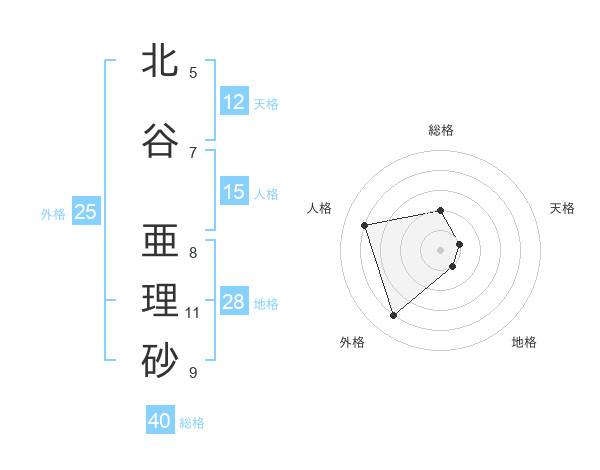 北谷 亜理砂さんを姓名の画数から五運を鑑定