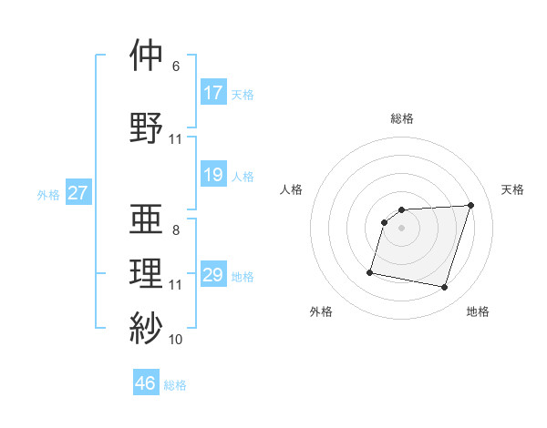 仲野 亜理紗さんを姓名の画数から五運を鑑定