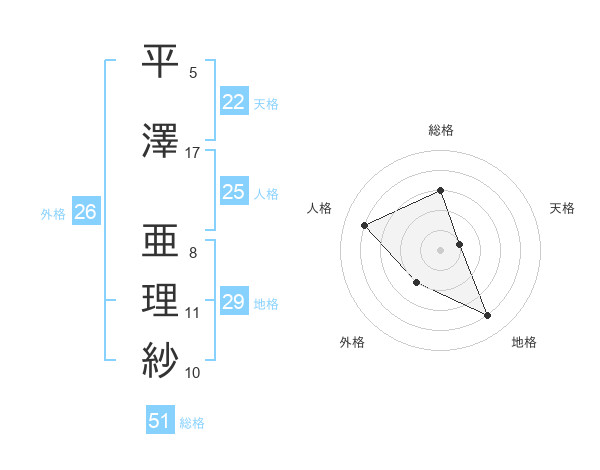 平澤 亜理紗さんを姓名の画数から五運を鑑定