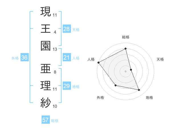 現王園 亜理紗さんを姓名の画数から五運を鑑定