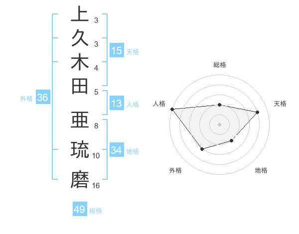 上久木田 亜琉磨さんを姓名の画数から五運を鑑定
