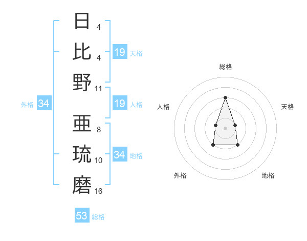 日比野 亜琉磨さんを姓名の画数から五運を鑑定