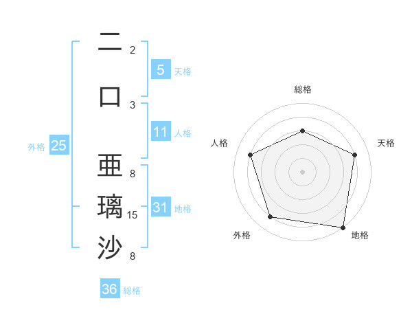 二口 亜璃沙さんの地格は31画の5点!