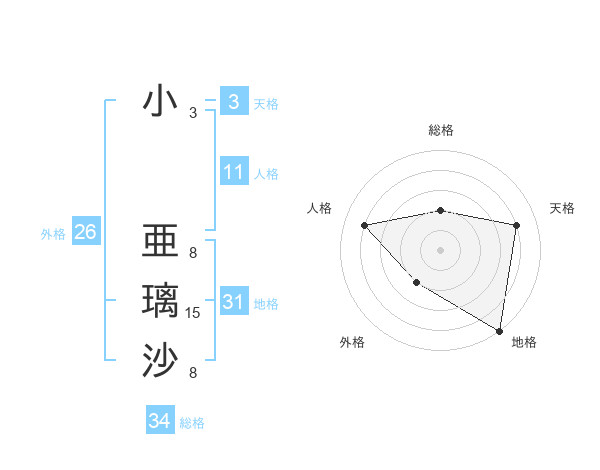 小 亜璃沙さんを姓名の画数から五運を鑑定