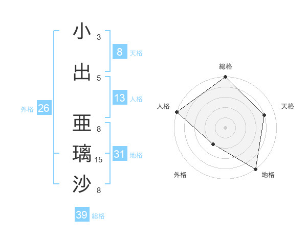 小出 亜璃沙さんを姓名の画数から五運を鑑定