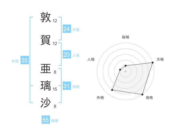敦賀 亜璃沙さんの外格は35画の4点!
