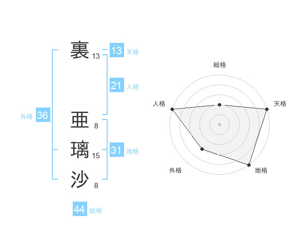 裏 亜璃沙さんの天格は13画の5点!