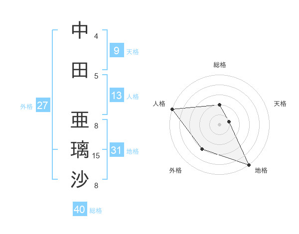 中田 亜璃沙さんを姓名の画数から五運を鑑定