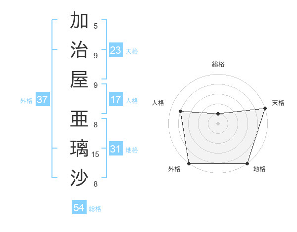 加治屋 亜璃沙さんの外格は37画の5点!
