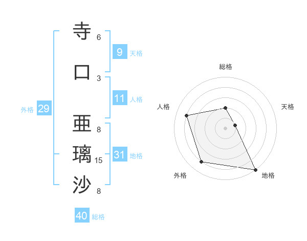 寺口 亜璃沙さんの地格は31画の5点!