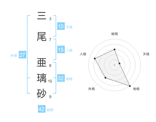 三尾 亜璃砂さんを姓名の画数から五運を鑑定