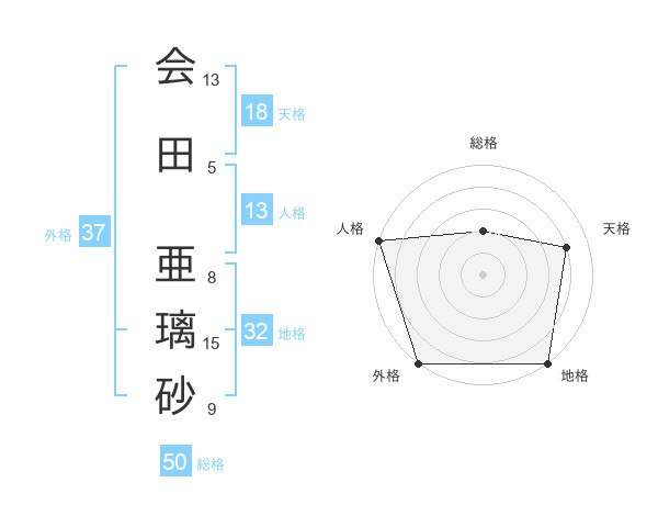 会田 亜璃砂さんを姓名の画数から五運を鑑定