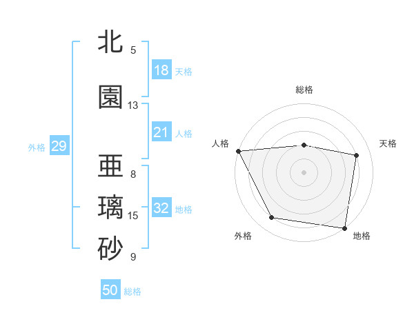 北園 亜璃砂さんを姓名の画数から五運を鑑定