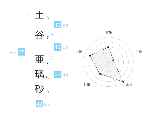 土谷 亜璃砂さんを姓名の画数から五運を鑑定