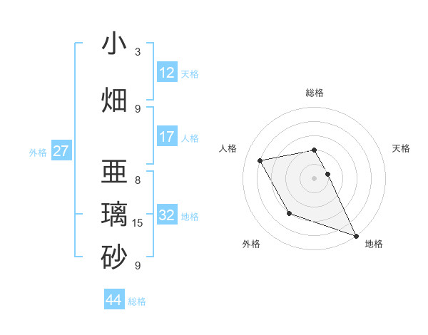 小畑 亜璃砂さんを姓名の画数から五運を鑑定