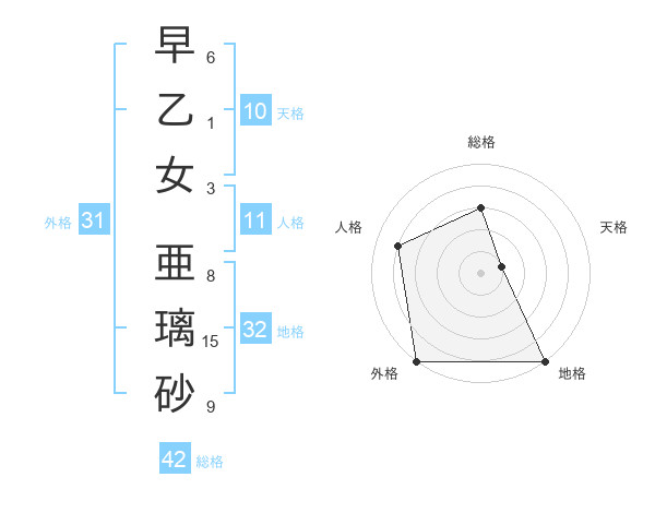 早乙女 亜璃砂さんの総格は42画の3点!