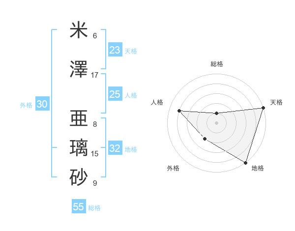 米澤 亜璃砂さんの天格は23画の5点!