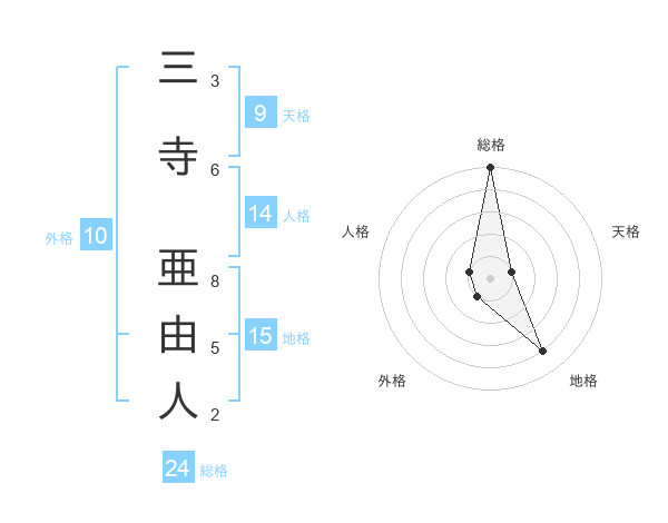 三寺 亜由人さんの総格は24画の5点!
