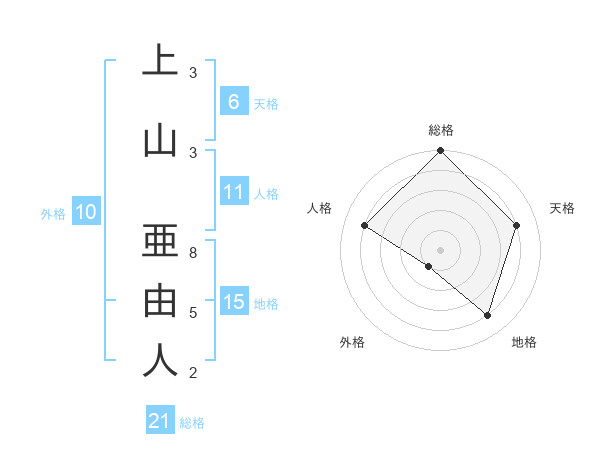 上山 亜由人さんの総格は21画の5点!