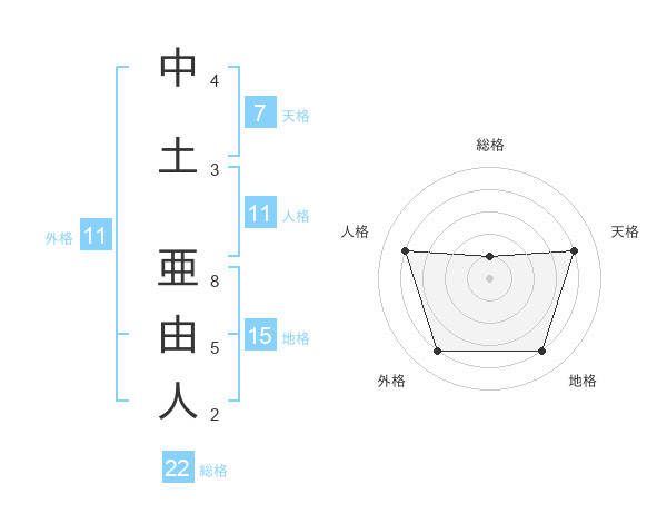 中土 亜由人さんの外格は11画の4点!