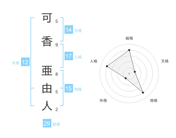 可香 亜由人さんを姓名の画数から五運を鑑定