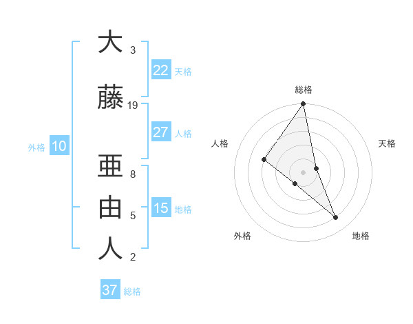 大藤 亜由人さんの総格は37画の5点!