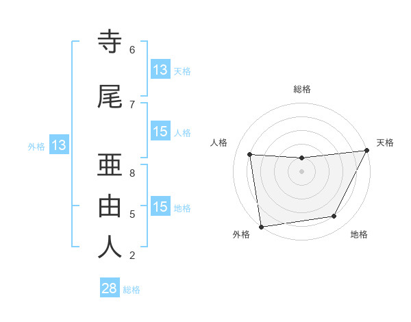 寺尾 亜由人さんの外格は13画の5点!