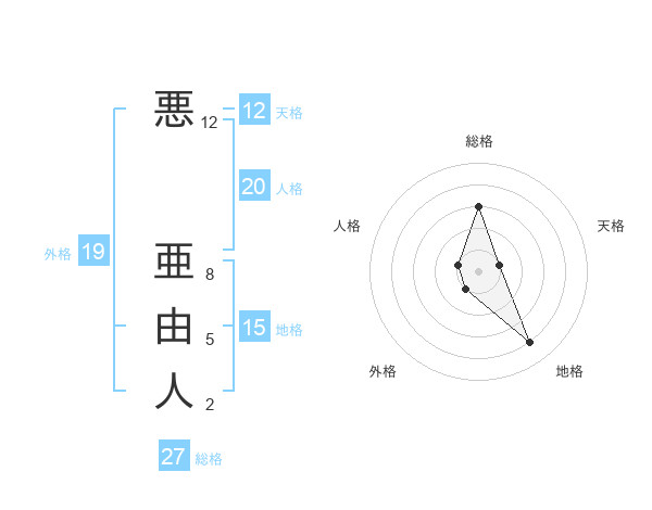 悪 亜由人さんの天格は12画の1点!