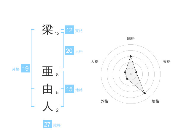 梁 亜由人さんの天格は12画の1点!