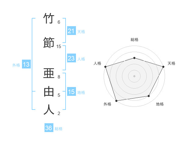 竹節 亜由人さんを姓名の画数から五運を鑑定