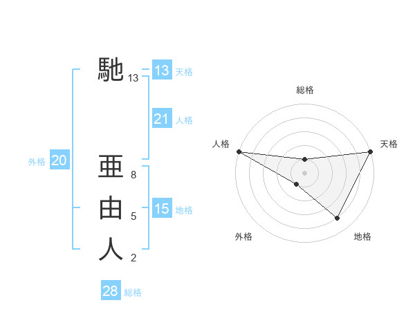 馳 亜由人さんを姓名の画数から五運を鑑定
