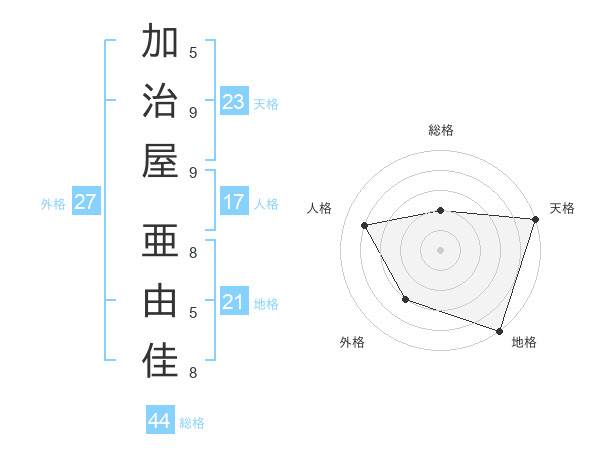 加治屋 亜由佳さんを姓名の画数から五運を鑑定