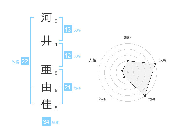 河井 亜由佳さんの天格は13画の5点
