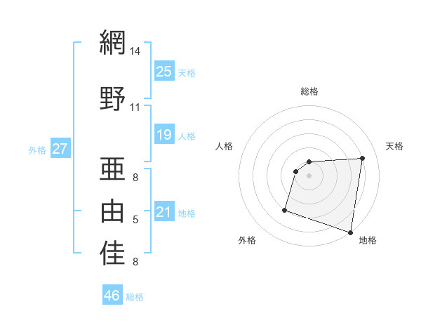 網野 亜由佳さんの総格は46画の1点!