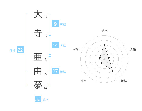 大寺 亜由夢さんを姓名の画数から五運を鑑定
