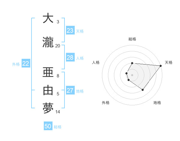 大瀧 亜由夢さんを姓名の画数から五運を鑑定
