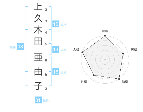 上久木田 亜由子さんを姓名の画数から五運を鑑定