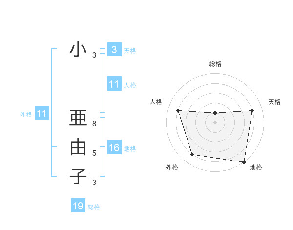 小 亜由子さんの外格は11画の4点!