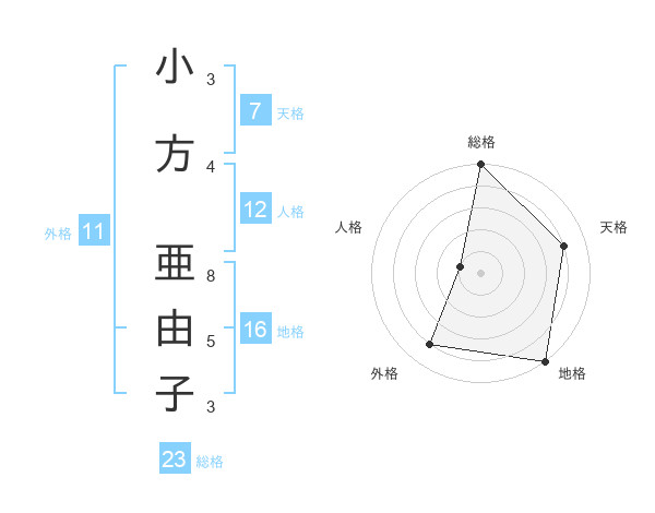 小方 亜由子さんを姓名の画数から五運を鑑定