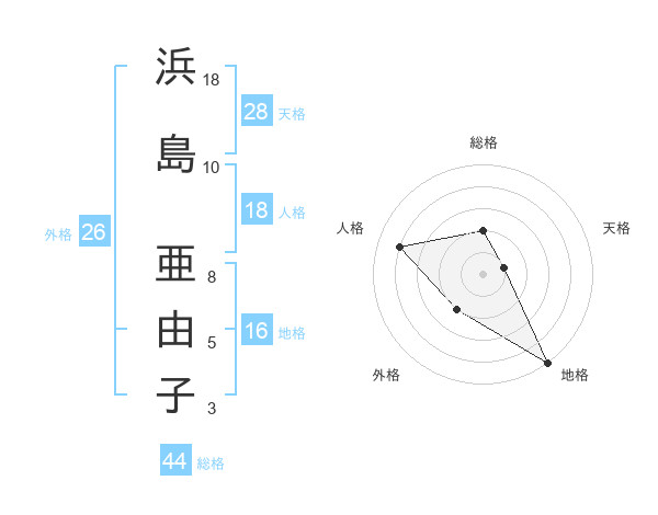 浜島 亜由子さんを姓名の画数から五運を鑑定